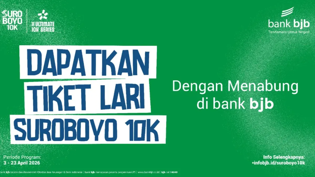 bank bjb memberikan kesempatan bagi nasabah baru maupun nasabah existing untuk memperoleh tiket lari dengan mengikuti skema penempatan dana tertentu. Adapun program berlangsung mulai 3 April hingga 23 April 2026 atau selama kuota masih tersedia, dengan total kuota sebanyak 250 tiket lari.