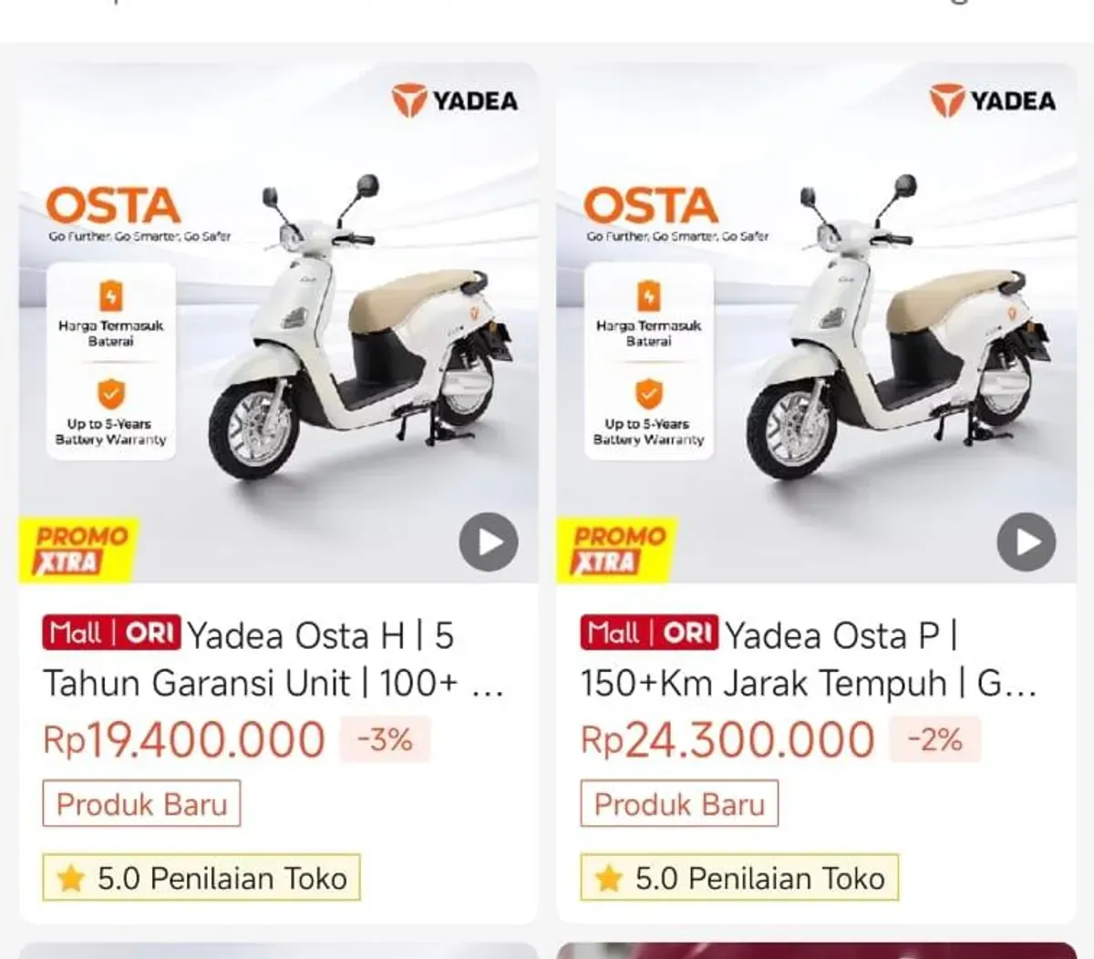 Yadea OSTA kita sudah bisa dibeli secara online (Sumber: Yadea)