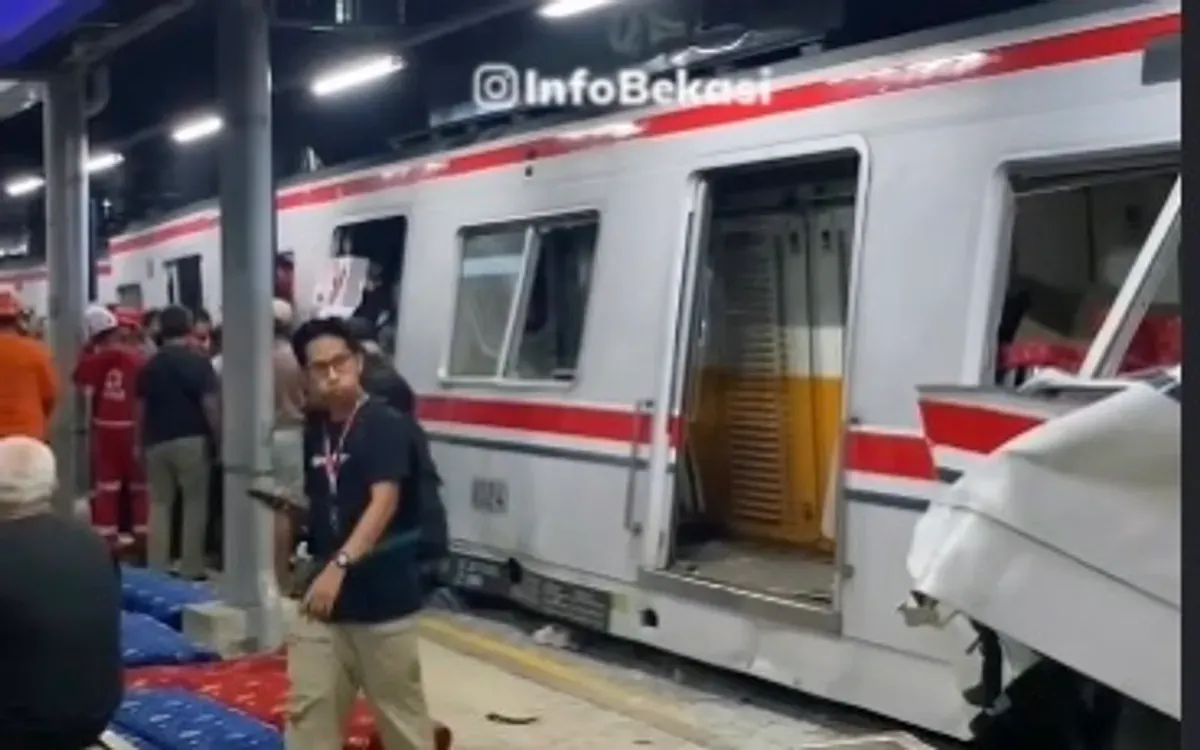 Berdasarkan video yang tersebar di media sosial, rangkaian kereta perempuan bagian belakang KRL terlihat ringsek akibat tabrakan tersebut.
