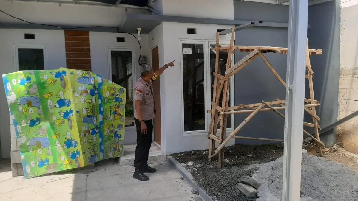 Anggota Polsek Parung memeriksa rumah diduga sedang direnovasi dan dimintai uang koordinasi oleh terduga ormas di wilayah Kecamatan Ciseeng, Kabupaten Bogor. (Sumber: Dok. Polsek Ciseeng)
