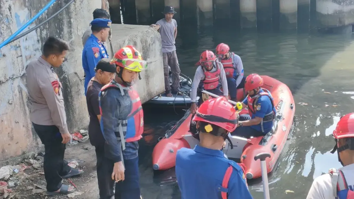 Tim SAR dari Ditpolairud Polda Metro Jaya bersama unsur SAR gabungan menemukan korban tenggelam berinisial di aliran DAS Banjir Kanal Timur (BKT), Jakarta Utara, dalam kondisi meninggal dunia, Rabu, 29 April 2026. (Sumber: Tim SAR gabungan)