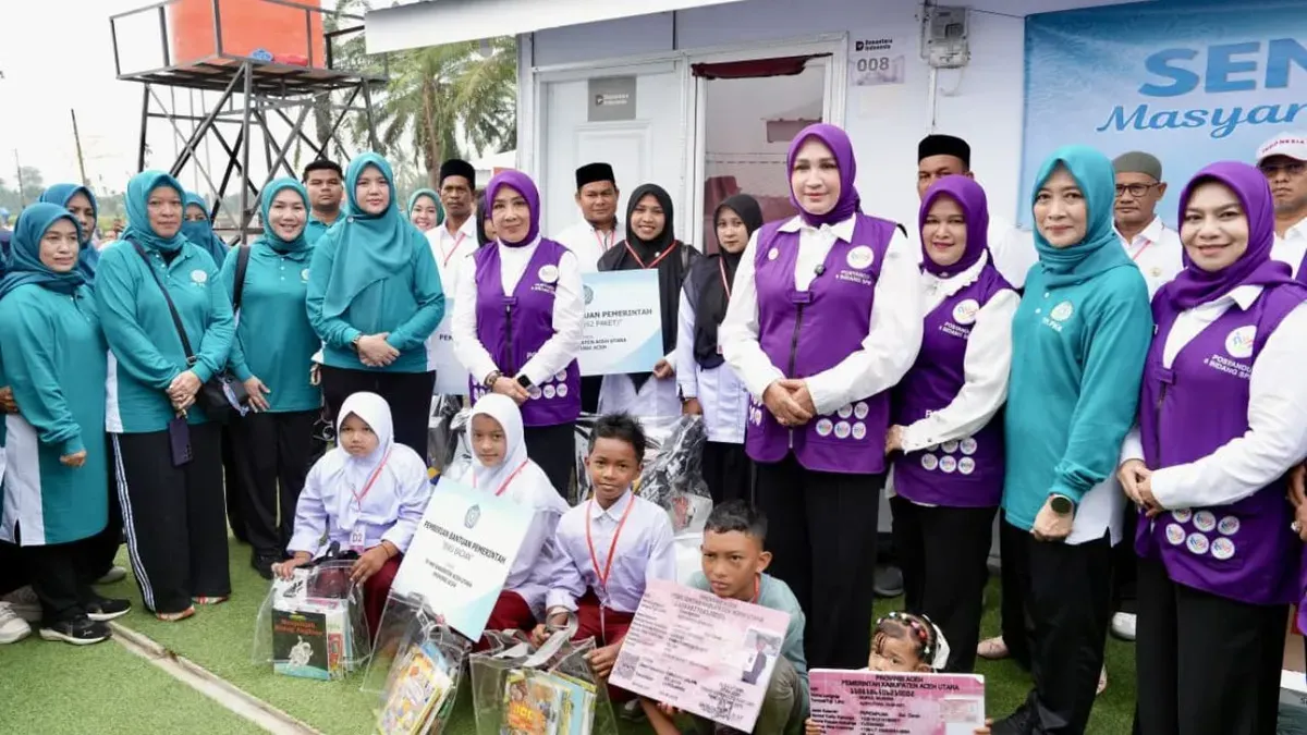 POSKOTA.CO.ID - Ketua Umum (Ketum) Tim Pembina (TP) Pos Pelayanan Terpadu (Posyandu) sekaligus Ketum Tim Penggerak Pemberdayaan dan Kesejahteraan Keluarga (TP PKK) Tri Tito Karnavian mendorong pemulihan warga hunian sementara (huntara) Aceh Utara melalui penyaluran bantuan sosial dan kegiatan senam sehat bersama anak-anak sekolah dasar di Langkahan, Aceh Utara.