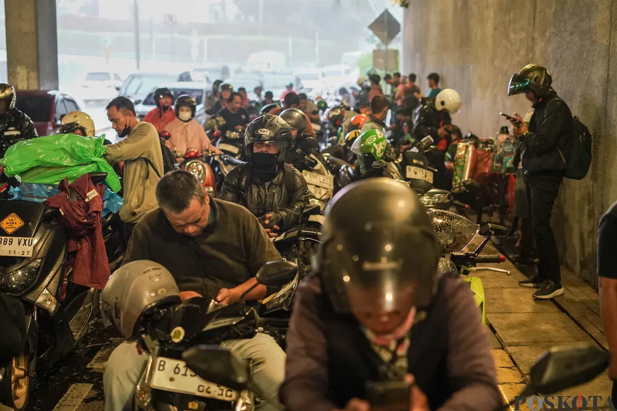 JAKARTA, POSKOTA.CO.ID - Sejumlah pengendara sepeda motor berteduh saat hujan di Terowongan Jalan R.M Margono Djojohadikoesoemo, Jakarta, Selasa, 9 September 2025. Badan Meteorologi, Klimatologi, dan Geofisika (BMKG) mengeluarkan prakiraan cuaca akumulasi curah hujan 24 jam untuk wilayah Jabodetabek, berlaku mulai Rabu, 10 September hingga Kamis, 11 September 2025.