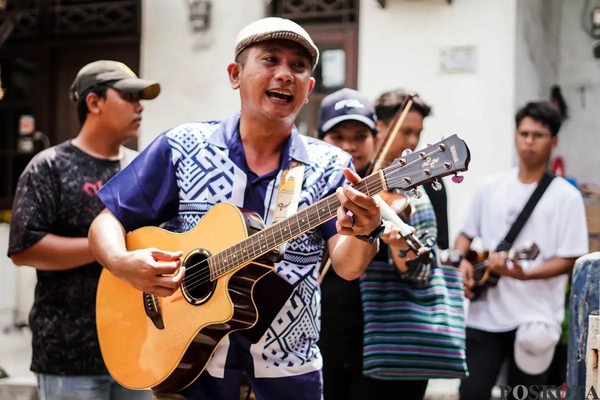 JAKARTA, POSKOTA.CO.ID - Orang Tugu menari dan bermain musik keroncong saat tradisi "Rabo-rabo" di Kampung Tugu, Semper, Jakarta Utara, Kamis, 1 Januari 2026. Tradisi Rabo-rabo merupakan tradisi yang dilakukan oleh warga Ikatan Keluarga Besar tunggu setiap tanggal 1 Januari pada tahun baru.