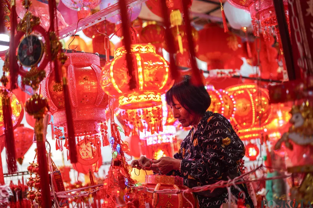 JAKARTA, POSKOTA.CO.ID - Pengunjung melihat pernak-pernik Imlek di Kawasan Pecinan Glodok, Jakarta, Rabu, 4 Februari 2026.