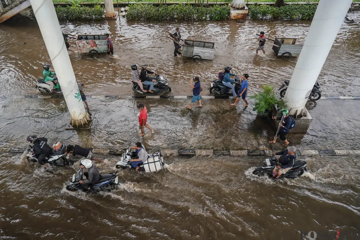 JAKARTA, POSKOTA.CO.ID - Warga melintasi genangan banjir di Jalan Swadharma Raya dan Jalan Ciledug Raya, Jakarta Selatan, Jumat, 20 Februari 2026. Badan Penanggulangan Bencana Daerah (BPBD) DKI Jakarta mencatat 123 RT dan sembilan ruas jalan tergenang banjir akibat hujan deras yang mengguyur wilayah Jakarta dan sekitarnya pada Kamis (19/2) malam.