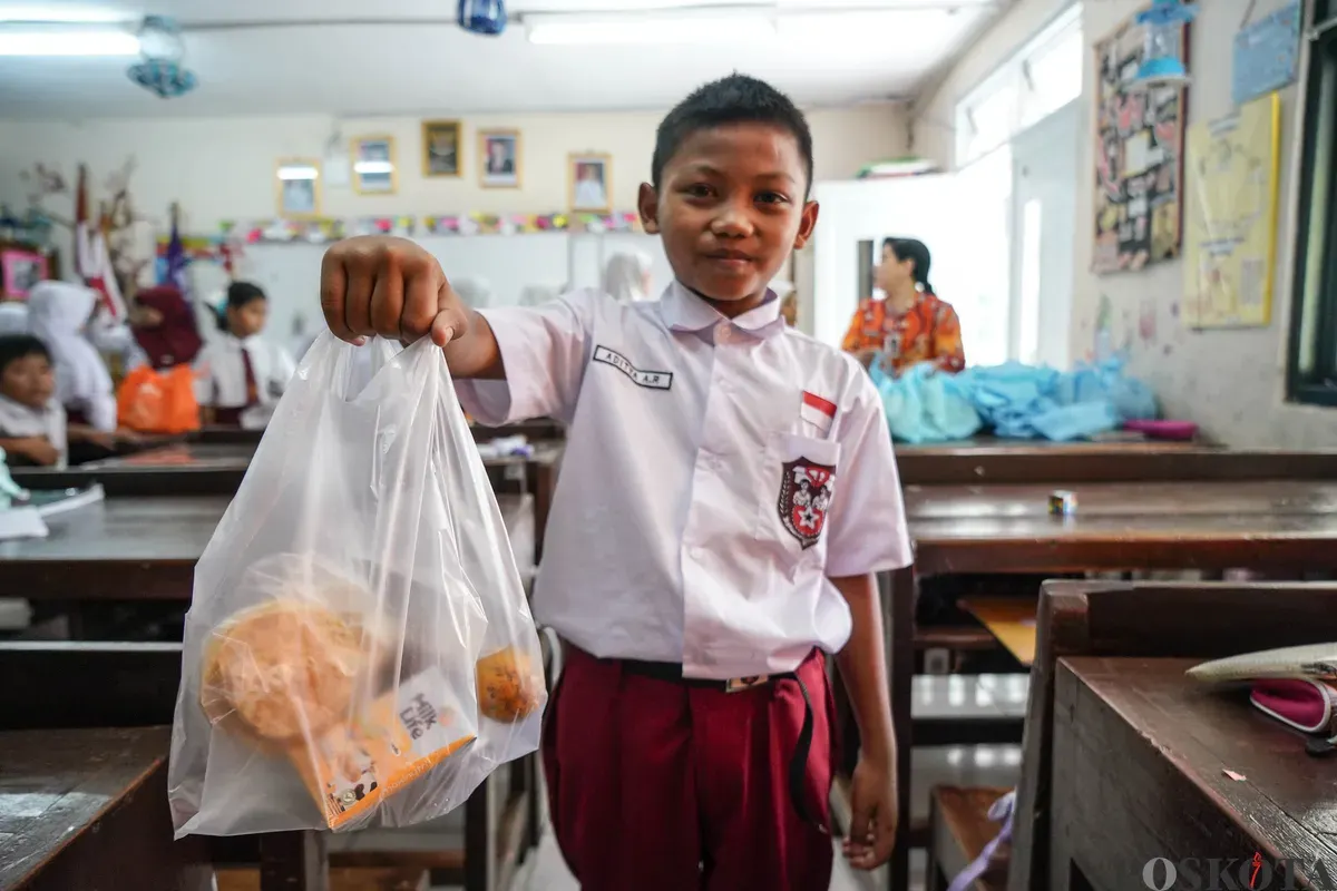JAKARTA, POSKOTA.CO.ID - Siswa menunjukkan paket program makan bergizi gratis di SDN Slipi 15, kawasan Palmerah, Jakarta, Kamis, 26 Februari 2026. Selama bulan Ramadan, siswa menerima dua paket MBG setiap pekan yang dibagikan setiap Senin dan Kamis.