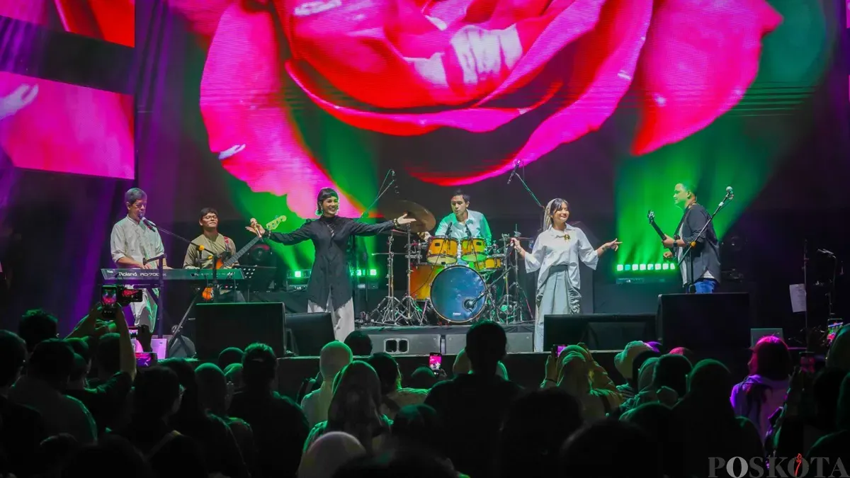 Grup musik tampil menghibur pengunjung pada Ramadhan Jazz Festival ke-15 di pelataran Masjid Cut Meutia, Jakarta, Jumat (6/3/2026). (Sumber: Poskota/Bilal Nugraha Ginanjar)