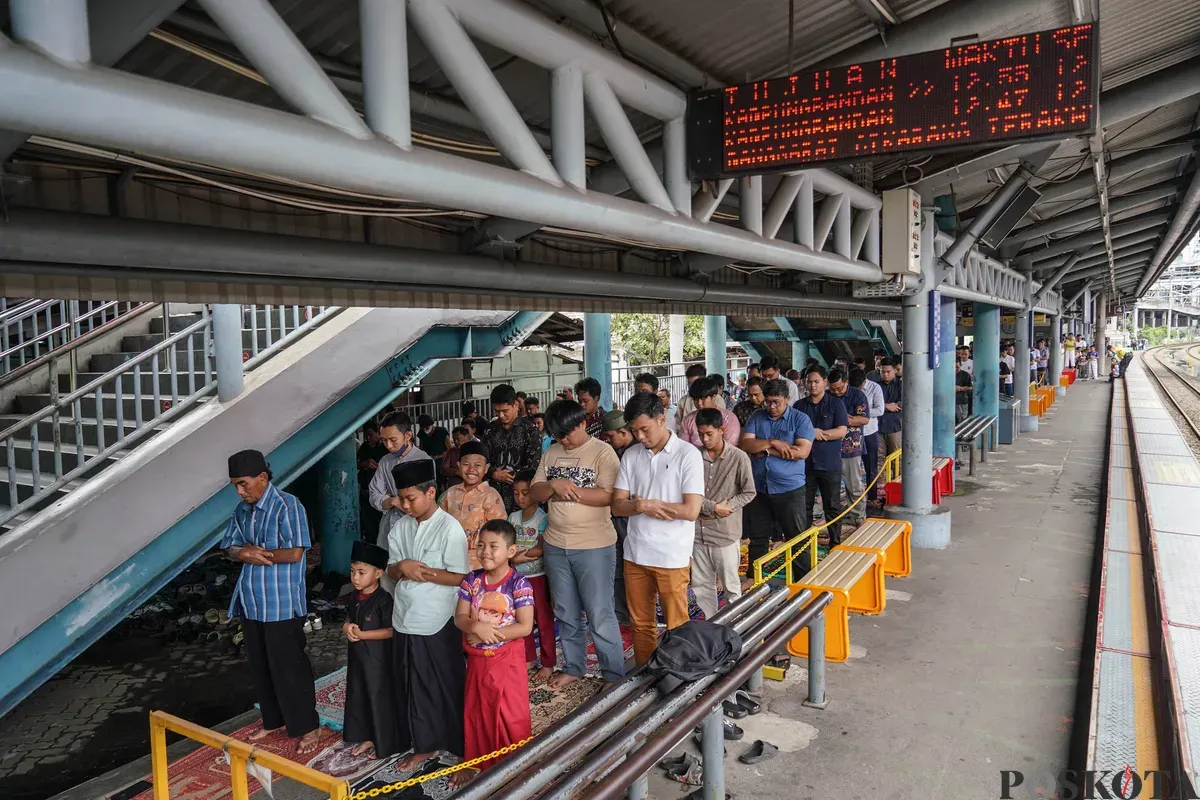 JAKARTA, POSKOTA.CO.ID - Warga melaksanakan shalat Jumat pada bulan Ramadhan 1447 H di peron Stasiun Kampung Bandan, Jakarta, Jumat, 6 Maret 2026. Shalat Jumat diperon stasiun tersebut dilaksanakan akibat Masjid Al-Hidayah yang berada di sebelah stasiun tidak mampu menampung seluruh jamaah.