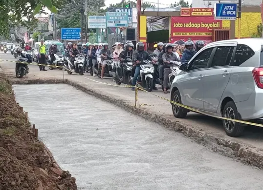 Pengecoran Jalan di Krukut Depok Sebabkan Macet, Polisi Lakukan Buka-Tutup Arus Lalin