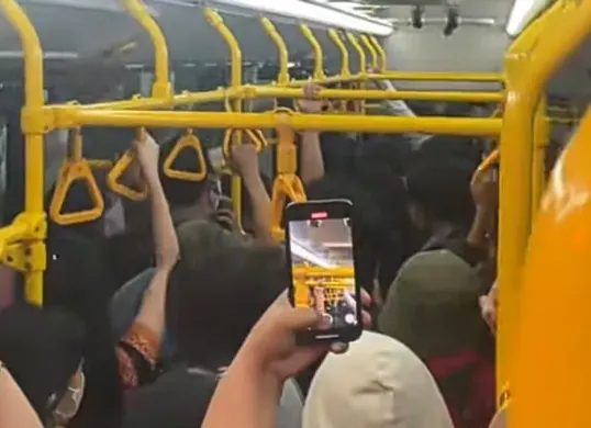 Viral, Penumpang Panik Berhamburan hingga Pecahkan Kaca Bus Transjakarta saat Terjebak di Perlintasan Kereta