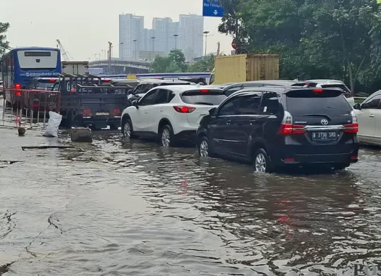 Genangan di Jalan Latumenten Jakbar Sebabkan Kemacetan Panjang