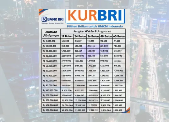 Cek Angsuran KUR BRI Plafon Rp10 Juta hingga Rp50 Juta Cicilan 1-5 Tahun
