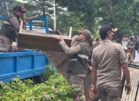 Pakai Trotoar, Puluhan Lapak PKL di Kembangan Jakbar Dibongkar