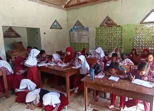 Tidak Punya Ruang Kelas, Siswa SDN Karyabuana Pandeglang Belajar di Musala